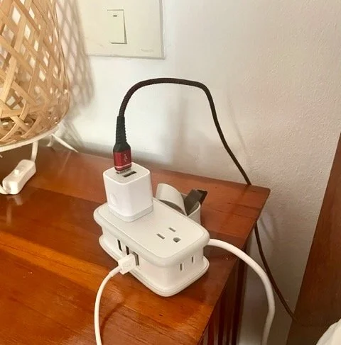 A portable phone charger is a must, but also consider a portable power strip. I used this one, because it’s compact, and I like the way to cord wraps up. We used it in airports where there was only one plug but we were charging multiple devices, and in hotel rooms to create a charging station. I bought a second one to put in our emergency kit in case we’re displaced and outlets are scarce.